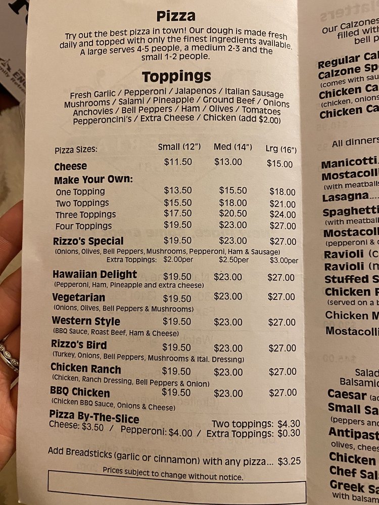 Whether for a DIY pizza party or a casual night out, Rizzo's Pizzeria guarantees delicious food and a memorable experience for all.